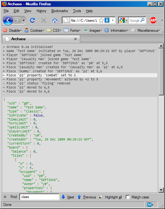 One of the fantastic bonuses of writing in Javascript is I have an interpreter with a great debugging suite at my disposal right from the outset with no messing on – Archaos’s core code is designed to run locally in a browser as well as server-side, and an adaptive messaging system will smooth the whole experience out so that what goes in and what comes out is the same wherever the clients or the servers are located.